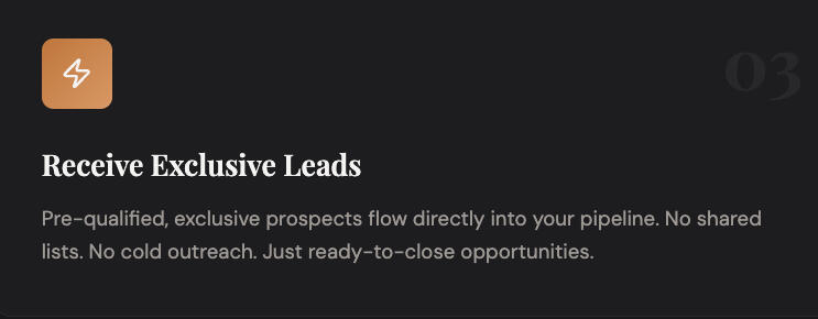 Stop competing for shared leads. Start receiving exclusive, pre-qualified prospects built for your business.